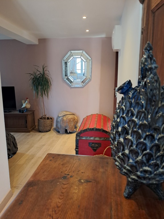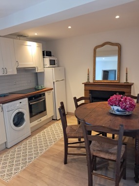 L’appartement, de plain-pied, a été aménagé avec soin pour offrir un maximum de confort tout en respectant l’esprit du lieu. Il comprend :