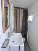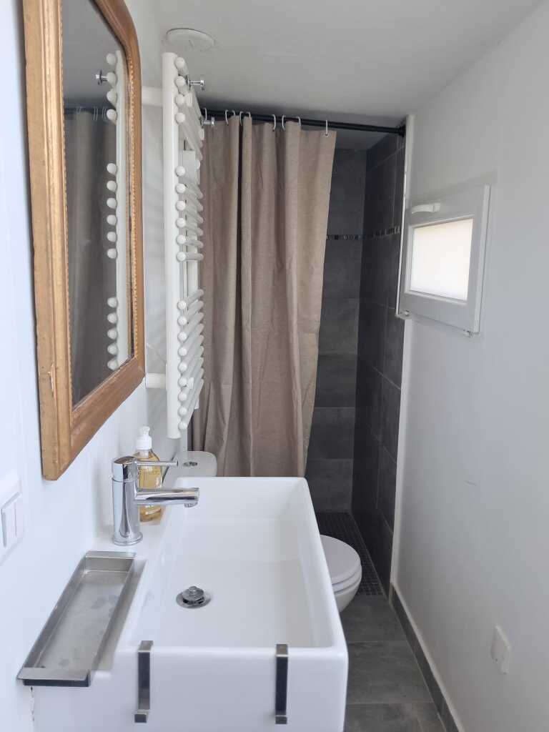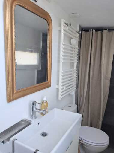 Une salle d’eau moderne avec douche, lavabo, WC (serviettes fournies)